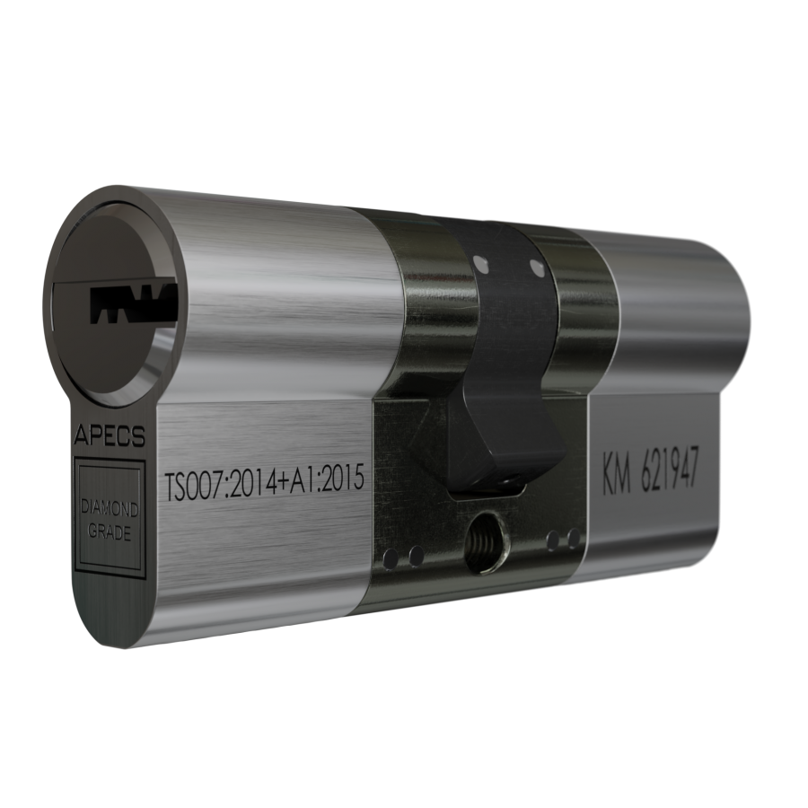 The APECS AP Cylinder, Diamond grade, BSI 3 Star Kitemark, offers maximum protection. It safeguards from all common forced entry methods of attack ranging from snapping, drilling, plug-extraction, picking and bumping. The AP cylinder is engineered with a unique sacrificial point where it is designed to snap in a way not to allow further damage of the lock inside. In the event of snapping, the homeowner can still operate the door and exit the property due to the interlocking mechanism with a unique cam protection block, which is engaged when the cylinder's external part is snapped off. The double locking mechanism with track pins protects and safeguards from bumping and picking and the hardened steel cam protection block prevents the cylinder from snapping and plug extraction.